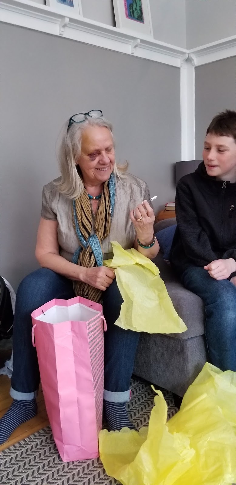 Mom decided to have a fight with the pavement, right before her birthday, so she was more colourful than normal.